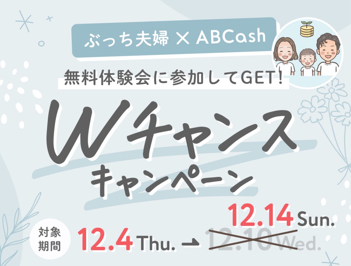 12月4日~14日までの期間限定で「ぶっち夫婦×ABCash」の特別コラボキャンペーンを開催中✨
