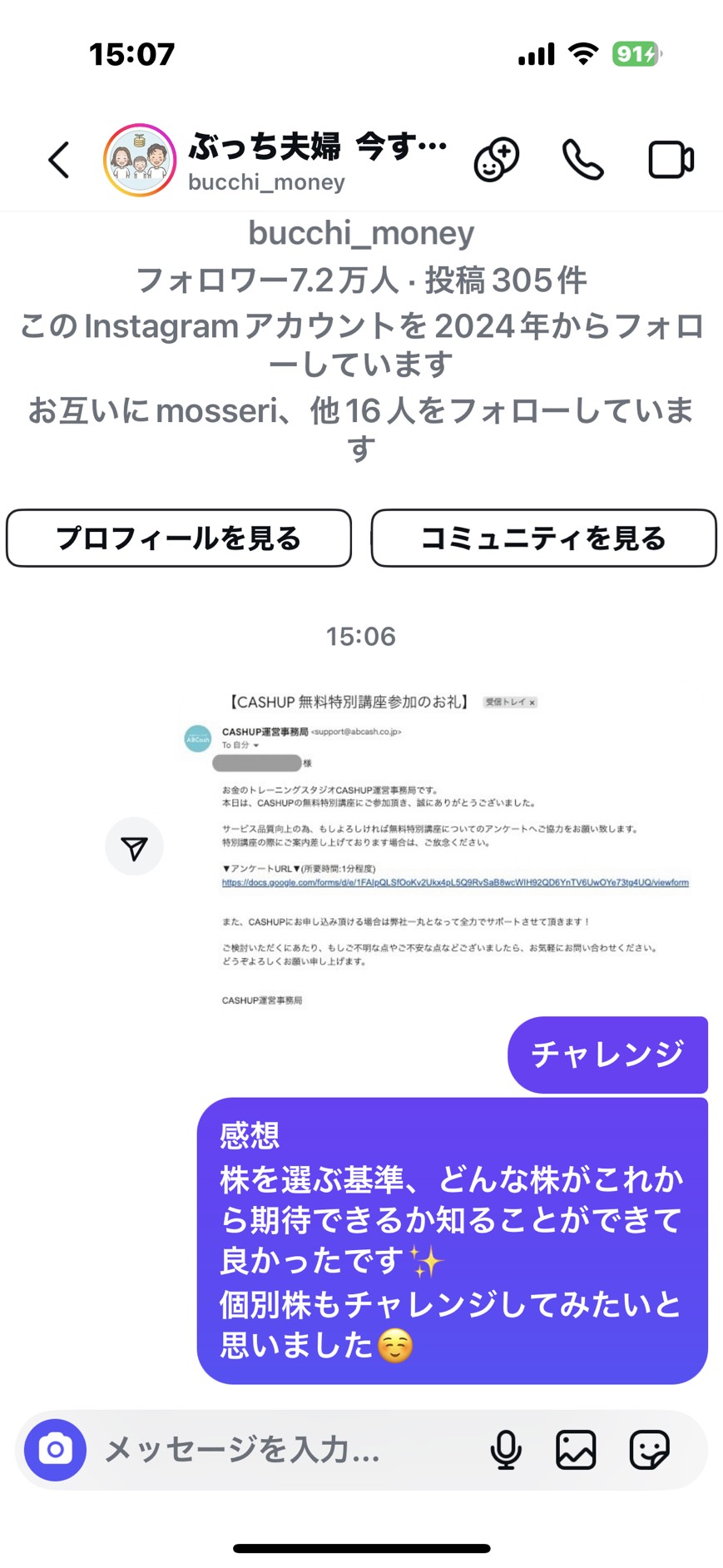 独学で個別株を学んでいるような中・上級者さんも、さらに成果を出したいならCASHUPを受けてみましょう!