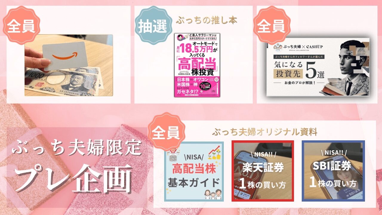 ①全員対象アマギフ②気になる投資先5選③抽選プレゼントは、CASHUPから🎁