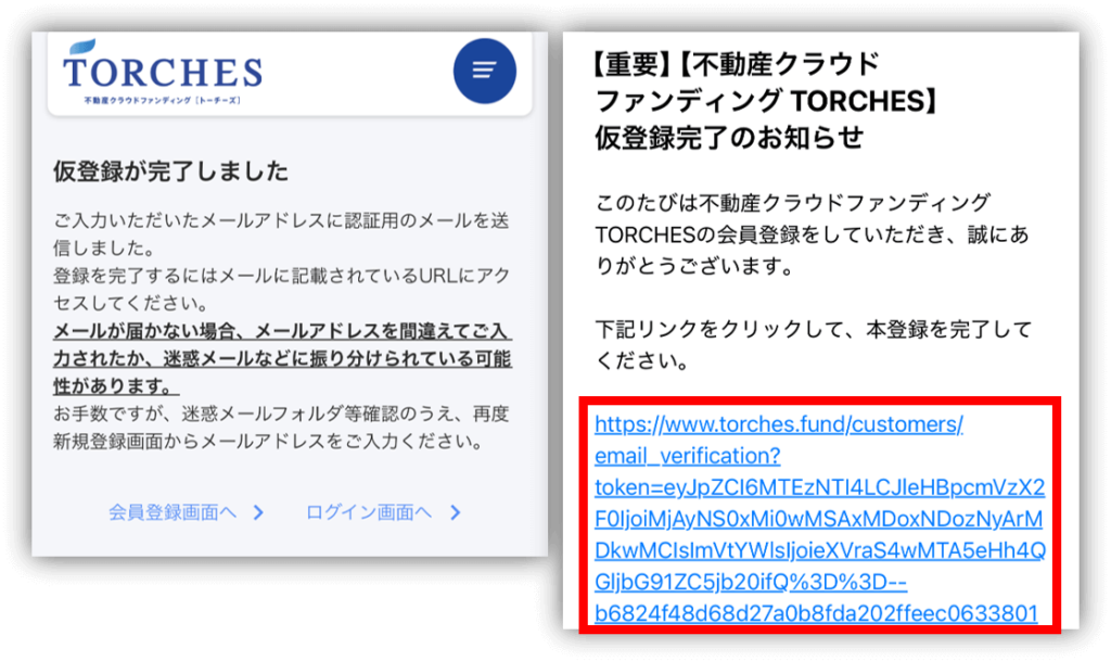 先ほど入力したメールアドレスに「仮登録完了のお知らせ」が届くので、メール内に記載のリンクをタップしてください👍