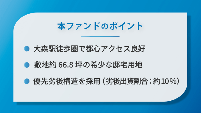 このファンドは、大田区山王2丁目にある計220.91㎡の土地が投資対象です!