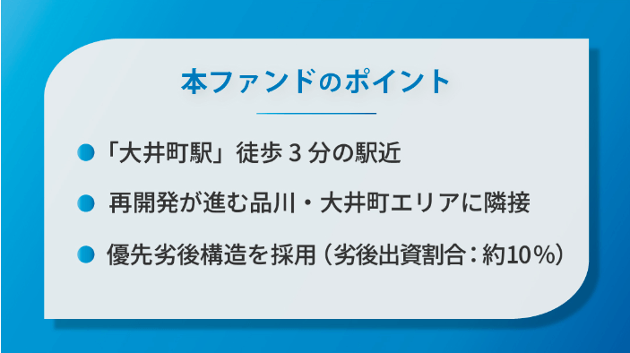 投資対象の東大井エリアは、交通利便性と住環境の両方が優れていて、安定した住宅・商業ニーズが見込まれます。