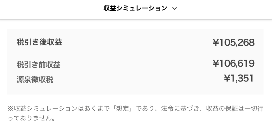 実際に、想定利回り16%・運用期間5ヶ月の17号ファンドに10万円を投資したら、5ヶ月後には5,000円以上の分配金がもらえる計算(税引前)!