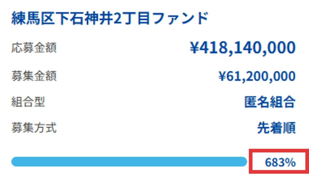 特に「練馬区下石神井2丁目ファンド」は、普段なら200%前後の応募率に対して683%とかなり応募が集中しました💦